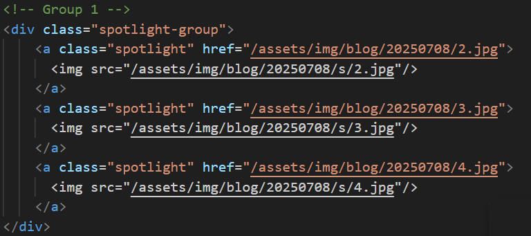 I wrote a quick Python script to perform image format conversions to .jpg (typically photos were .webp or .JPG after Messenger compression), generate image thumbnails with via very basic photo-scaling, and then write those filepaths into the drafted markdown blogpost. The script searched through the markdown for any new lines beginning with either * IMG or * VID and then inserted the above code blocks using any filenames found afterwards i.e. the above code blocks are generated from the following markdown lines: