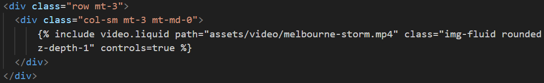 Once all the media is collated into the repo, or youtube, I needed to actually work it into the blogpost markdown files. I did this by first drafting out the text of the blog post, and then inserting markers for the numerically sorted images and named videos. Al Folio offered a couple of ways to embed media in the blogposts, but here are the typical code snippets I needed to insert into a post: