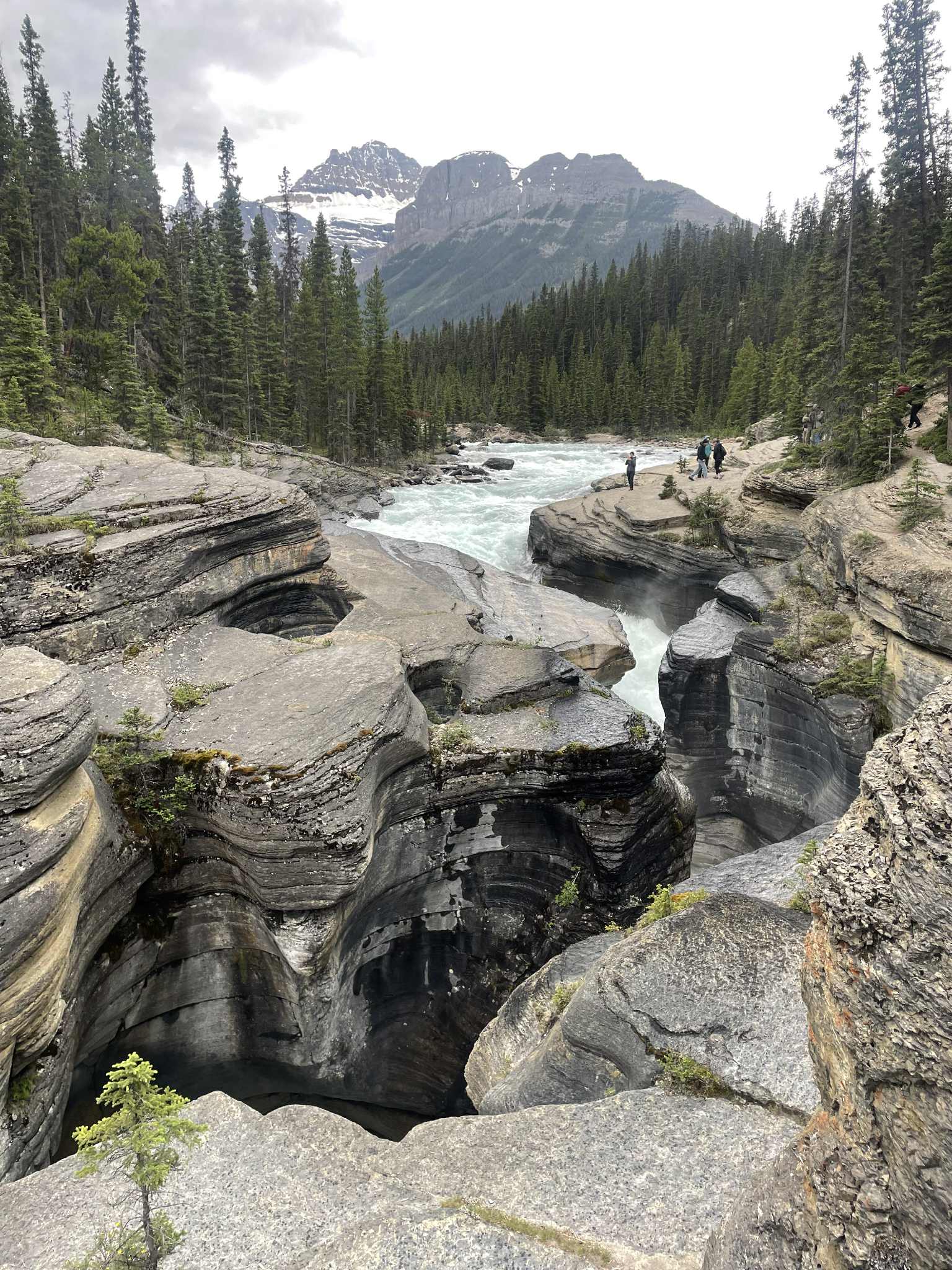We were continuing our journey along the icefields parkway today. Our first stop was the Mistaya Canyon, a bit like yesterday the pictures don’t do it justice but the water went from a serene wide river to a roaring canyon over. Super impressive and the water was so powerful it sprayed up at you as it hit the rocks below.