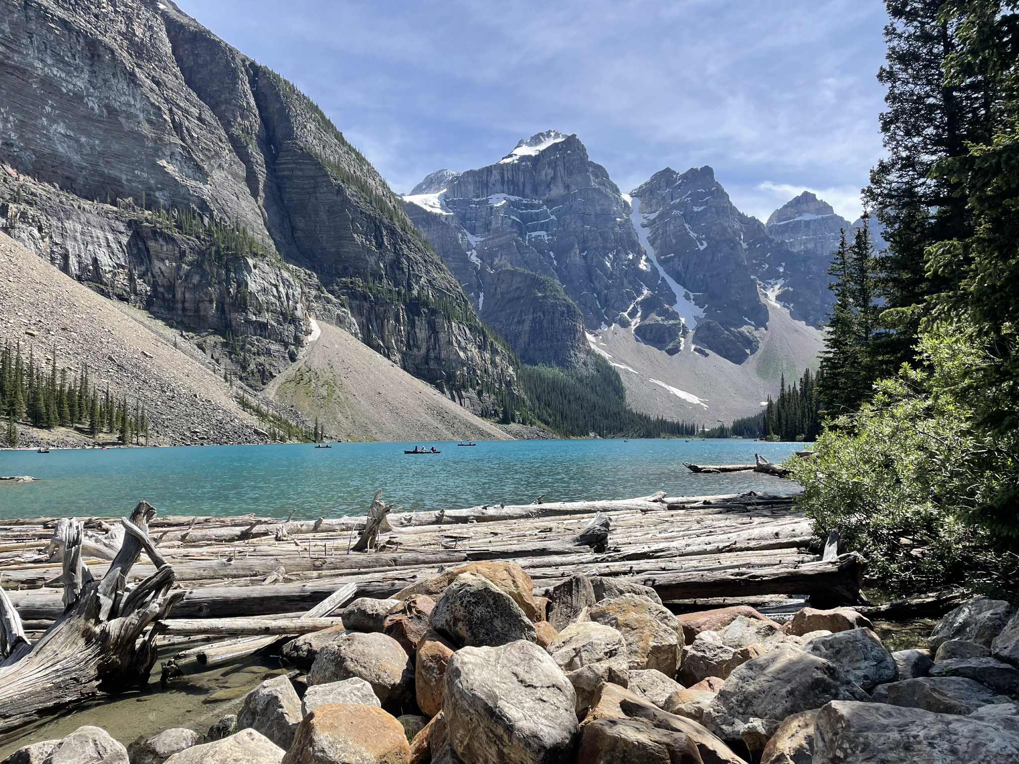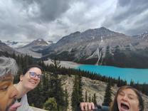 After a quick lunch stop we parked up and caught our coach ride to the picturesque Moraine Lake - a bright blue glacial lake surrounded by mountains all around. We spotted both chipmunks and the interestingly-named Hoary Marmots clambering around the rocky lake surroundings, and we even recreated a photo taken by Mike’s family 15 years earlier (this time with much better weather!). Lake Louise also provided fantastic views, however it was a bit busier so we didn’t linger for too long before grabbing the coach back.