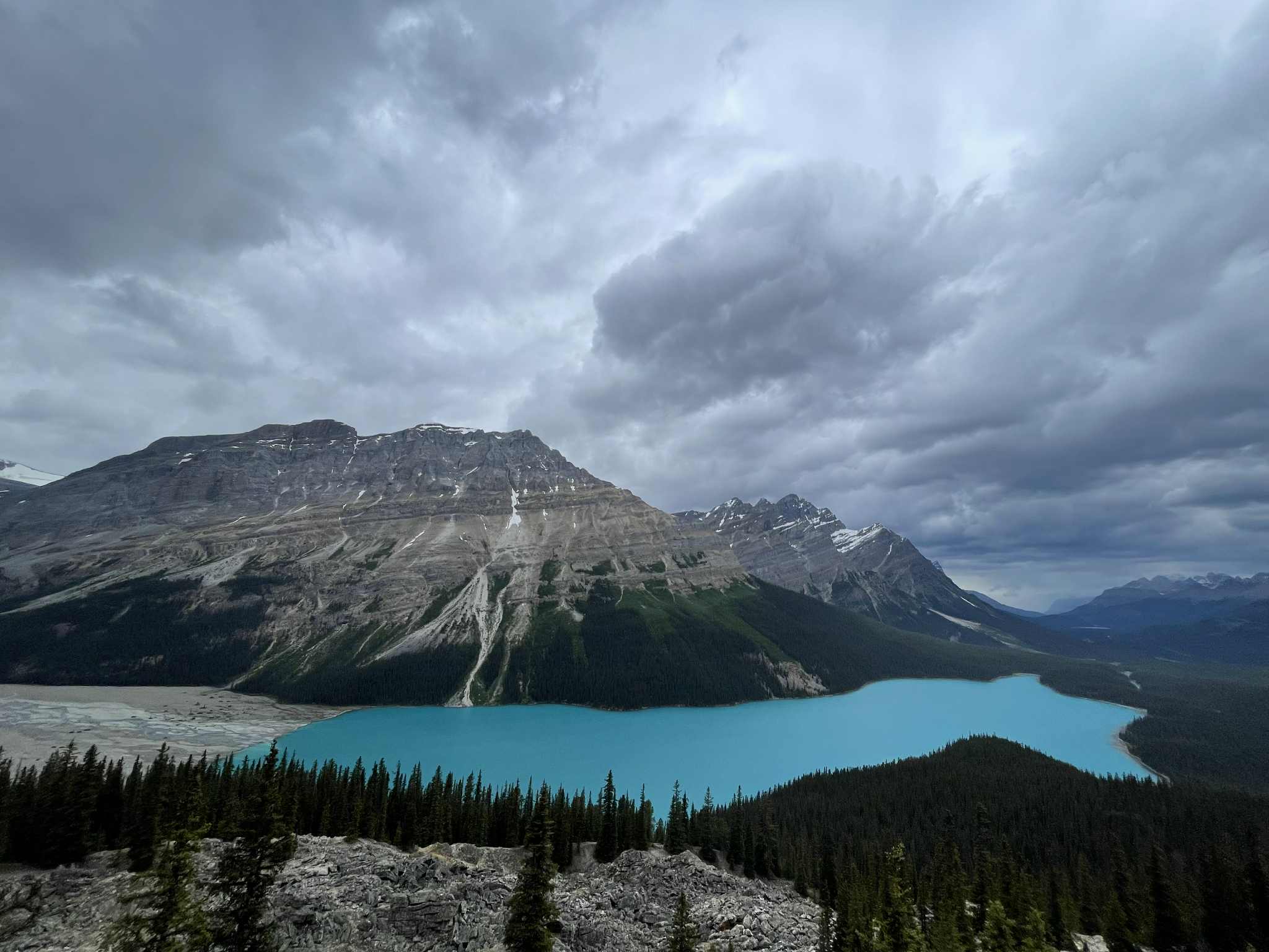 Our second stop was the stunning Peyto Lake. The blue colour was phenomenal and even though it was quite busy the size of the viewing area made it not feel as bad. With the lake being so beautiful we decided to take the Bow Summit Lookout walk to get a better view. Apart from the deer we saw, the walk was well and truly not worth it. The view was average and the walk pretty boring but it was nice to get some fresh and cooler air into our lungs at least.
