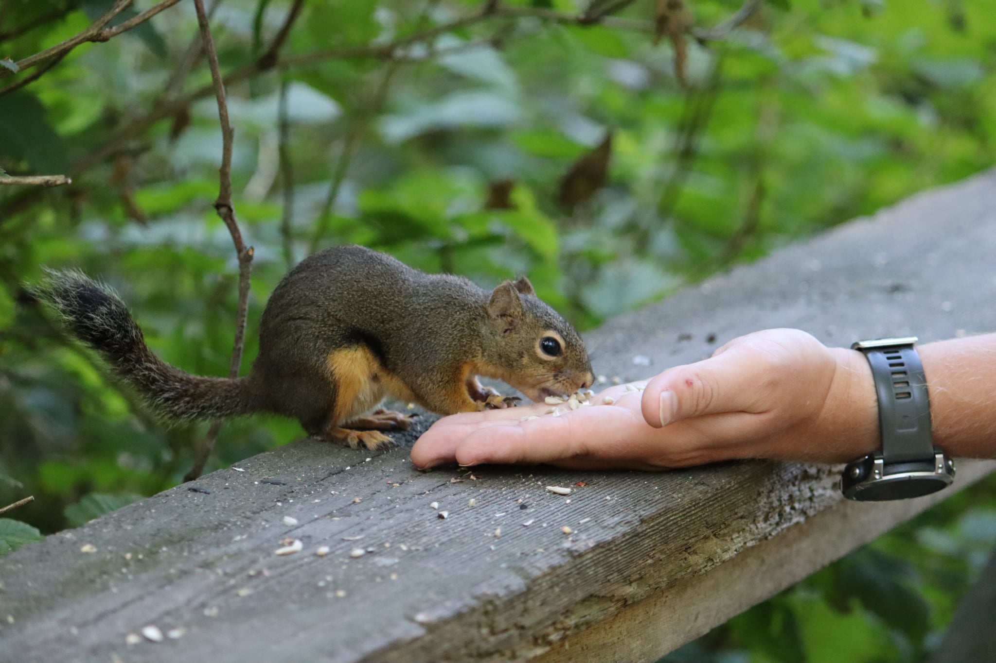Back on land and stylish suits removed, we called in at Pajo’s Fish and Chips nearby for some delicious lunch - too good to remember to take photos! We spent our afternoon over at Stanley Park. The totems were very cool to see up close and read about, and we spotted some seals patrolling the harbour waters for fish. We took a wander around Beaver Lake and spent some time at a particular small wooden bridge nearby where you can feed the birds and squirrels from your hand. There was a big black feisty squirrel that bullied the other smaller ones, and we even managed to see a bluejay!