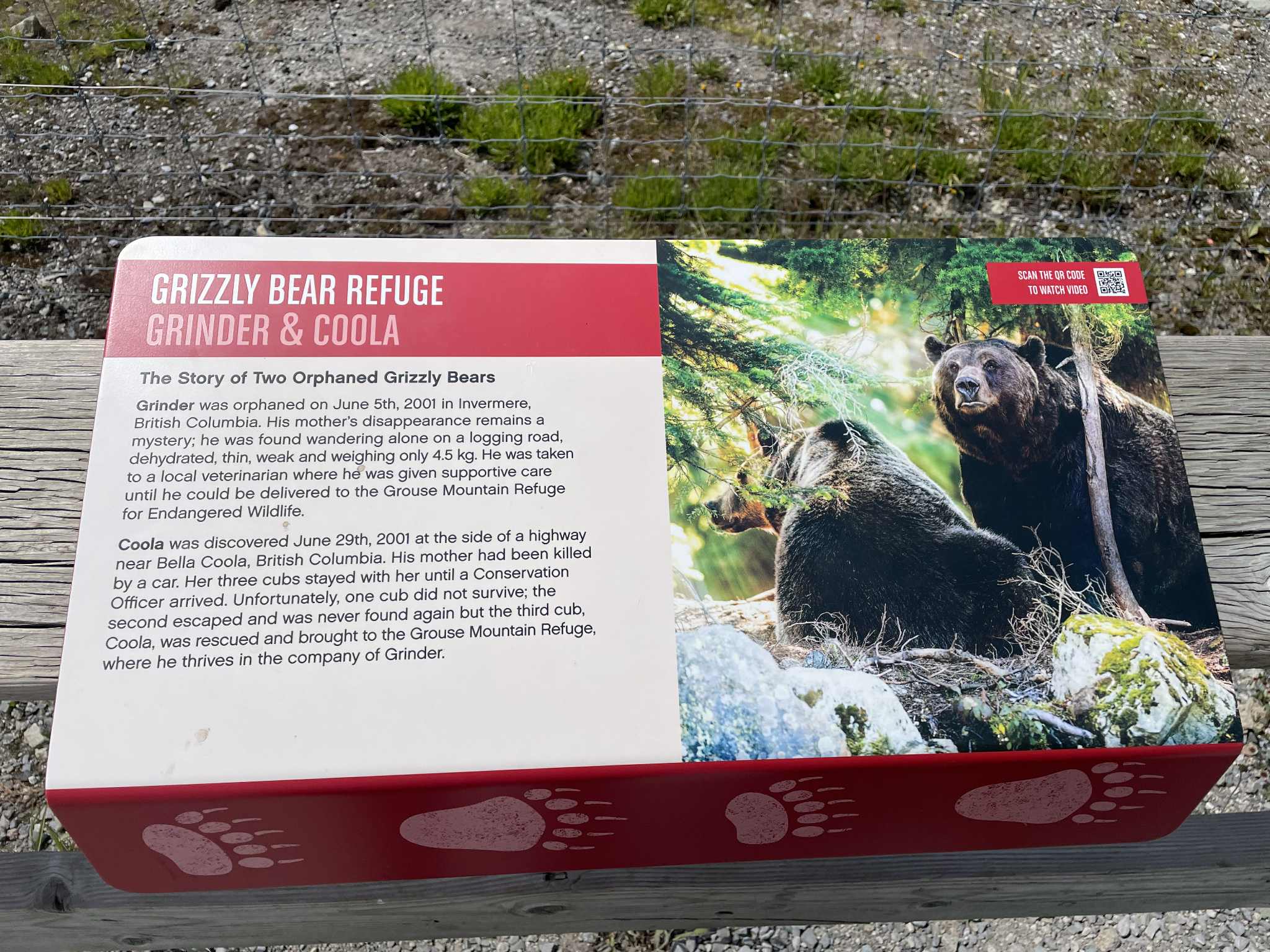 Stomachs full we decided to watch the bird show and we’re treated with raptors, owls, vultures, and a bald eagle. Then it was grizzly bear time. The two grizzlies at the top of grouse mountain are known as Coola and Grinder, and were orphaned cubs that were found around the same time and could thus be bonded together as brothers. They were almost 400kg in weight and they made sure to put on a show for everyone watching.