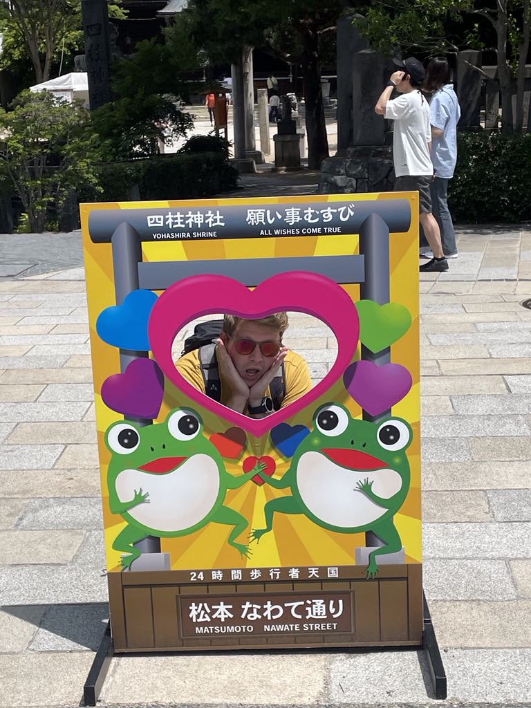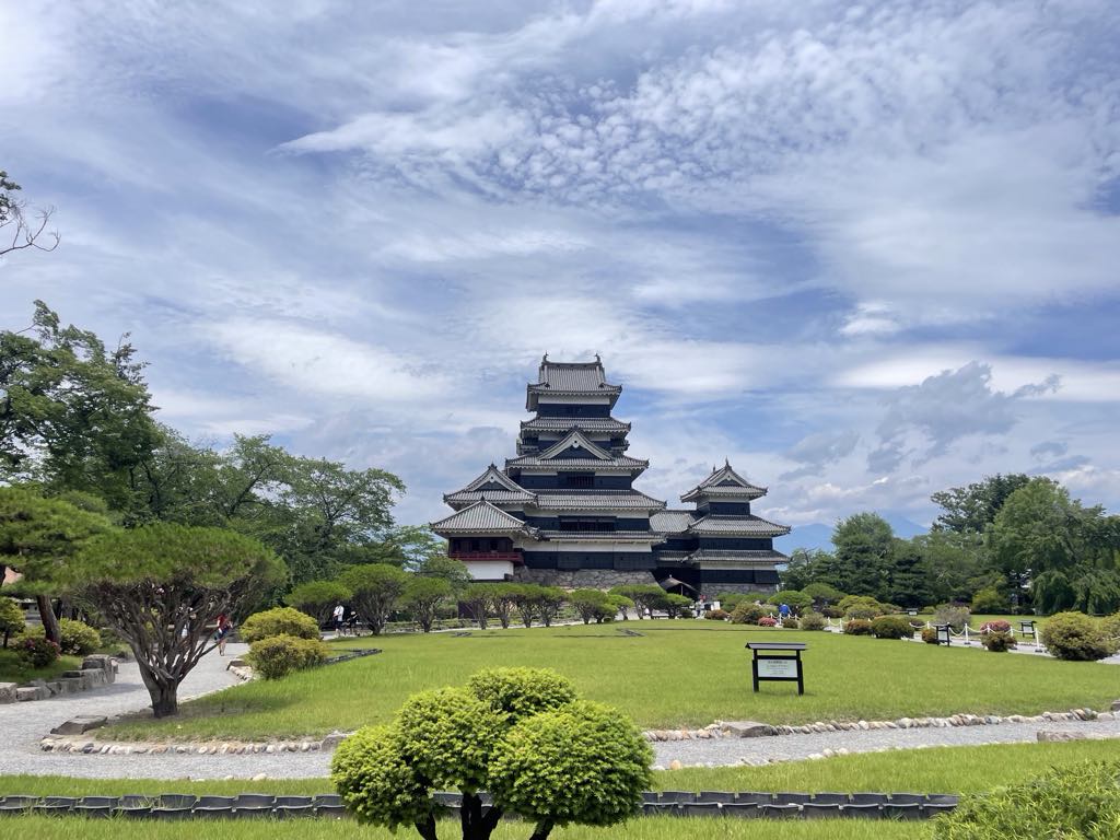 Another day trip today (there isn’t a huge amount in Nagano city!) so we headed out to Matsumoto. The main attraction was Matsumoto castle, but on the way we found a cute little series of shops and a shrine next to the river. These shops were all frog-themed, and there were frog statues everywhere! We don’t really know why though as we didn’t see or hear a real frog, but even the shrine had frog statues! The castle itself was 6 stories tall with a large moat. It had lots of information on its defence history and even an exhibition inside showing lots of historical rifles and weapons. And a cracking view from the top, definitely worth a visit.