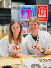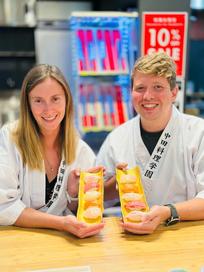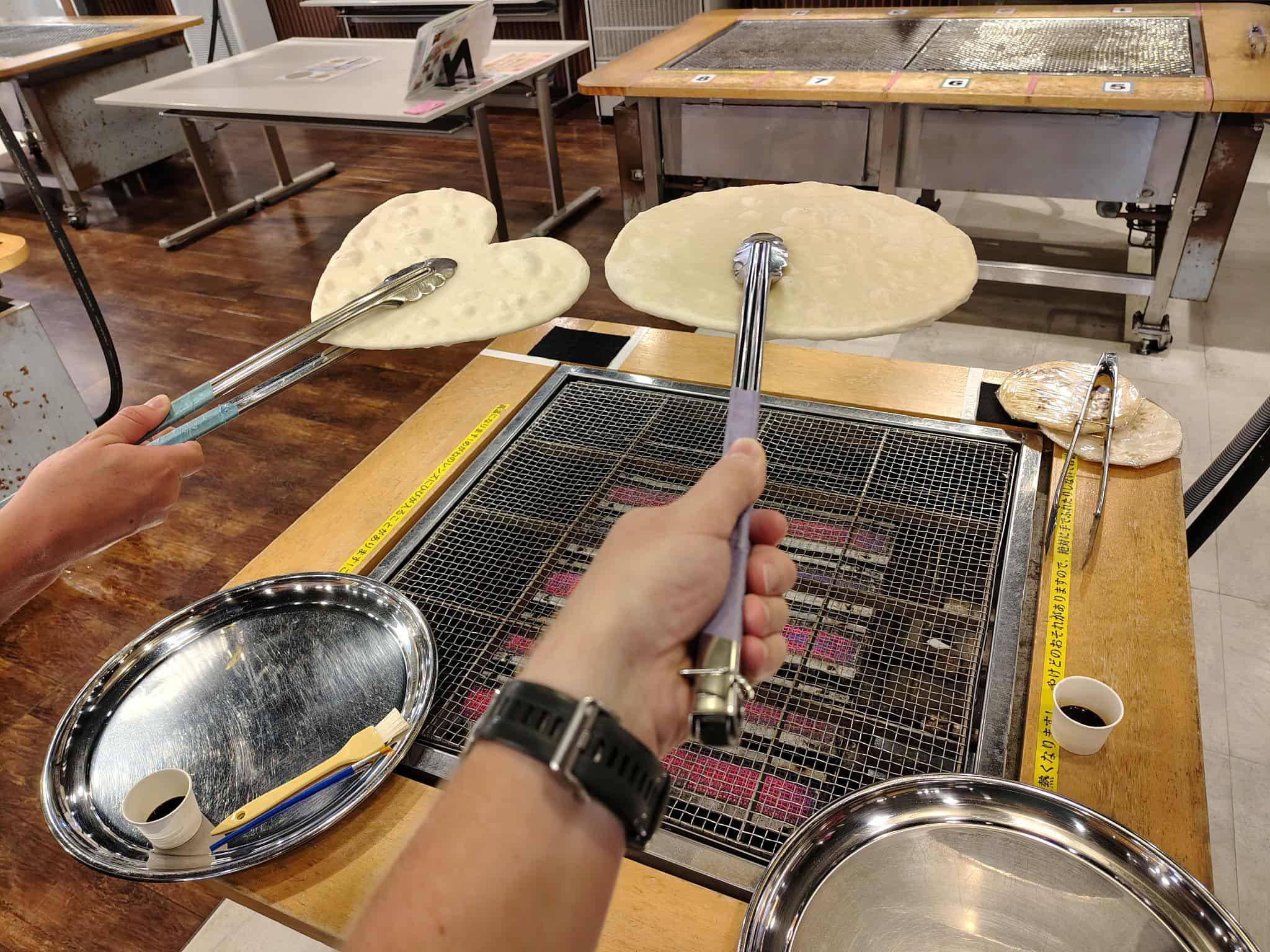 Today we did some prime tourism: a trip to the Rice Cake factory. We did the double experience which involved cooking and decorating a giant rice cracker and then a tasting experience. Do you know what we thought we wouldn’t have loved it, but actually we had a blast. We started with the decoration of a giant rice cracker, we had to heat it over the grill multiple times before painting it with soy sauce and then repeating the process. We were pretty proud of our artwork when we had finished! The tasting was also quite fun, we had a choice of toppings and then had to shake the container to coat the crackers. We chose the yuzu and ume plum flavour and they were yummy. The ume plum was nicer than the yuzu but we did enjoy both.