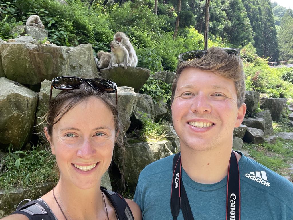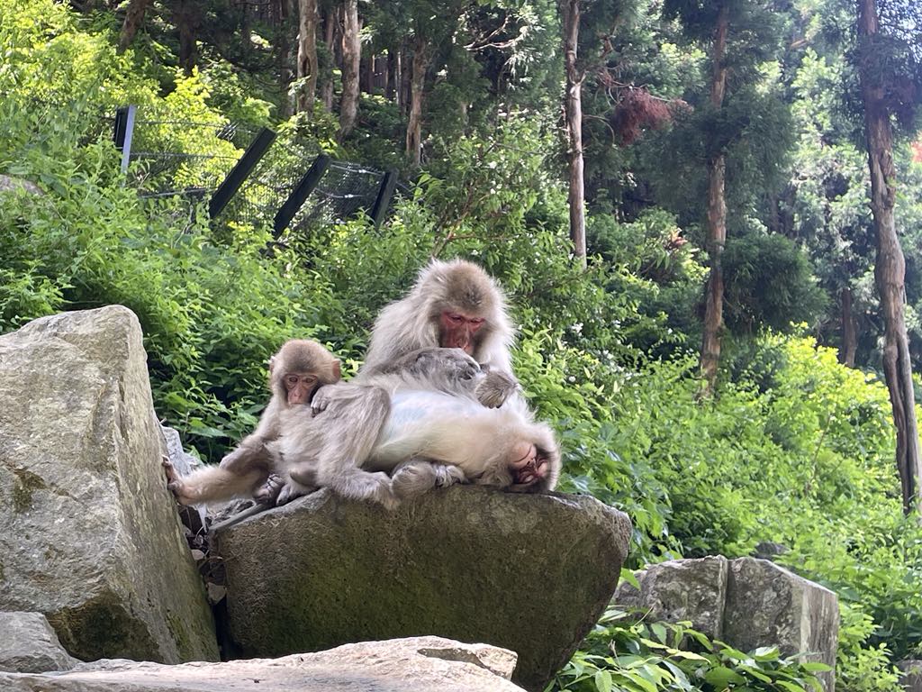 Today we headed out for another one of our must-do things in Japan: seeing the hot pool monkeys! We caught an hour-long coach from the Nagano Train station to Yamanochi, before then taking a bus and a 30 minute walk through the mountain forest to reach the monkey onsen area. We had timed our visit just right as the monkeys were raising their little babies which were super duper cute! Despite the heat we even saw a monkey or two wade through the hot pool. There were so many monkeys around and they were playing and tumbling around and just lounging in the sun. We loved our trip even though it was pretty busy.