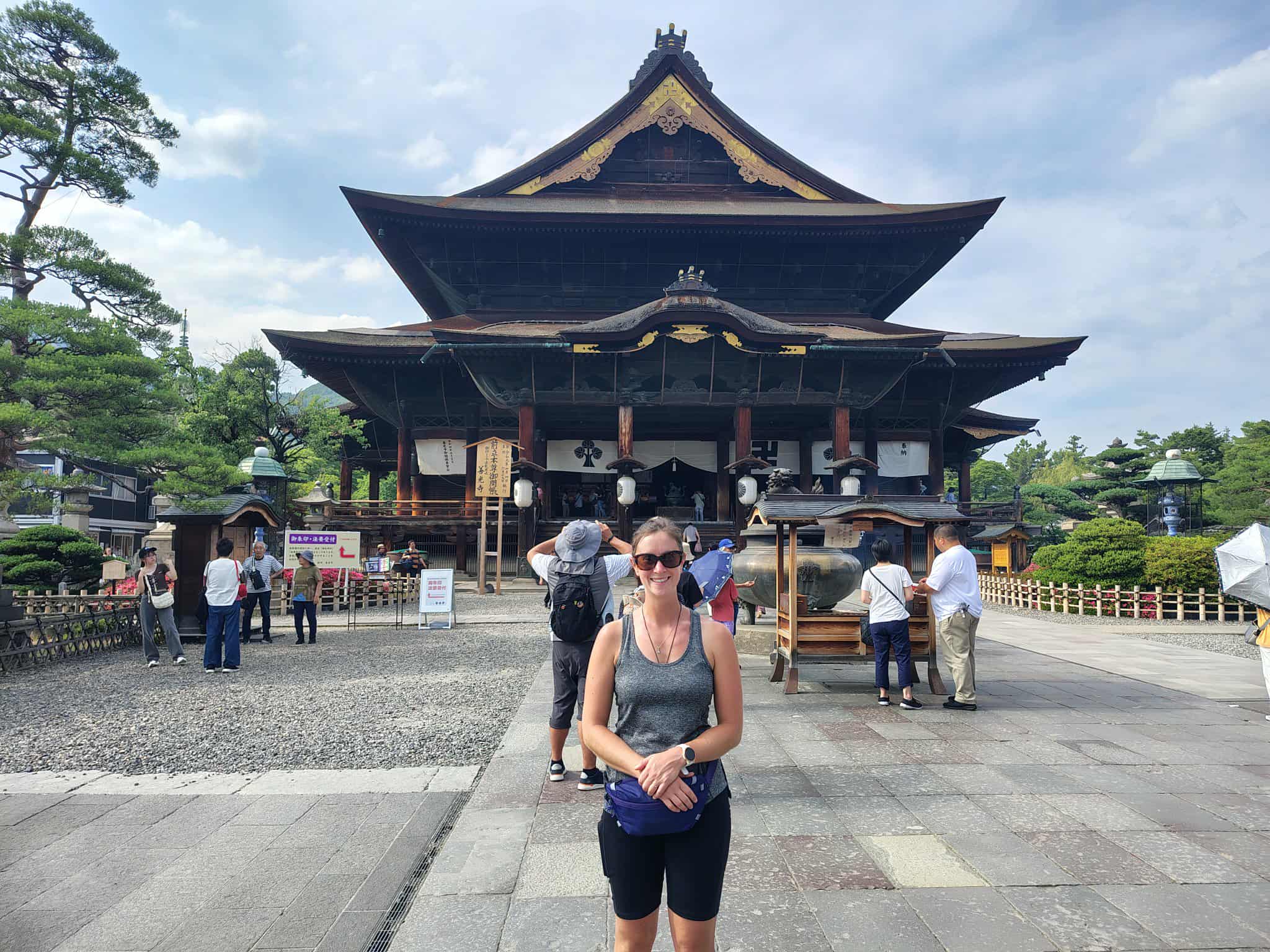 Once back in Nagano, we headed up the Main Street to the Zen Mojo Temple to get a goshuin and explore the beautiful temple which so many come to visit. We got slightly distracted on the way up, and ended up in a quaint little shop which sold Oyaki, which are almost a mix of bao buns and dumplings. We got a pumpkin one, and an aubergine one and we probably could have tried all of them, but we had to keep going up to the temple. It had a sign saying it was one of the oldest/founding temples from China and you can see why. There was a goshuin trail where you could visit each of the 5 huge buildings, go inside, explore and get a series of unique goshuin at each one. We really loved it and even better than thank we didn’t have to pay to enter the temples!
