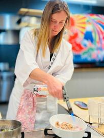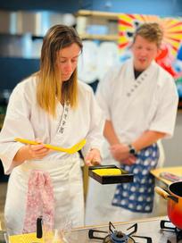 We headed back to the hotel to properly check in before our cooking class. The cooking class was just a few minutes down the road and we had worked up an appetite by the time we arrived. Our chef for the evening was called Seiji and we were the only students. We put on our chef aprons, chose our fancy knives to use, and had a blast for the evening! We learnt how to make a proper Japanese folded omelette, a dashi broth, some super tasty sushi, a delicious local stew, and an easy green salad. The food was super scrumptious, especially the flambéd scallop sushi! With full bellies we retired back to the hotel and are super glad we have the recipes!